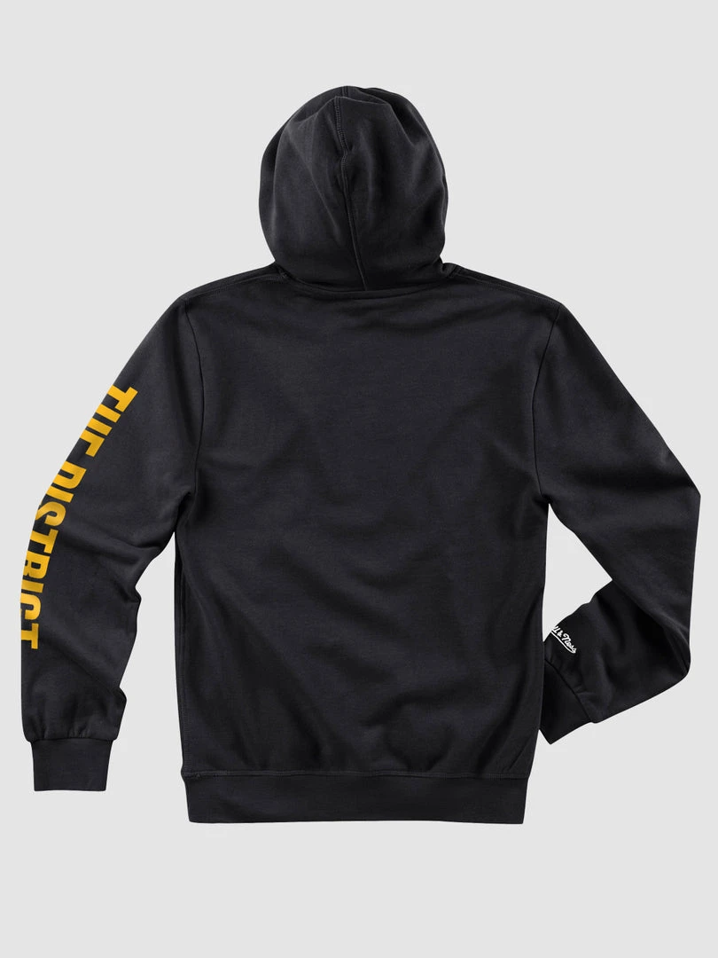 This hoodie is 80% cotton/20% polyester fleece body with a screen printed graphic on the front and sleeve, a kangaroo front pocket, a hood with drawcord for adjustability, 2×1 ribs at cuffs and waist and a special collaborative printed jocktag.