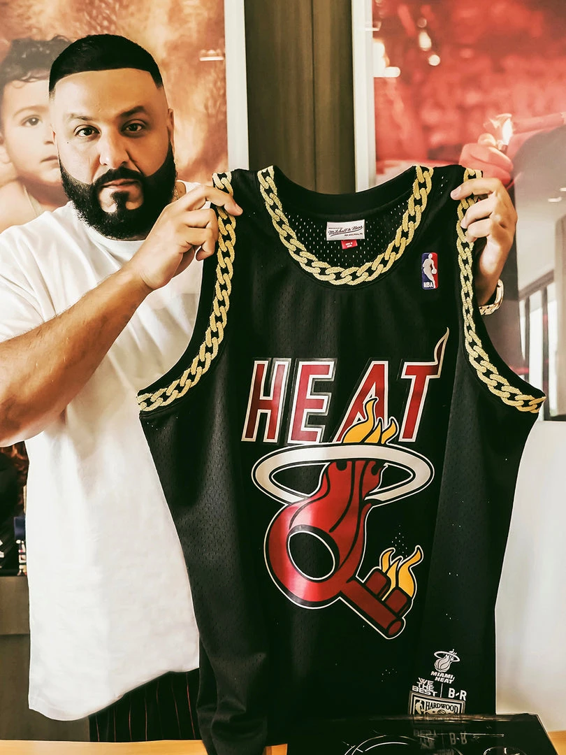 DJ Khaled reimagines the Miami Heat logo in this limited edition collaboration with the NBA, Bleacher Report and Mitchell & Ness.