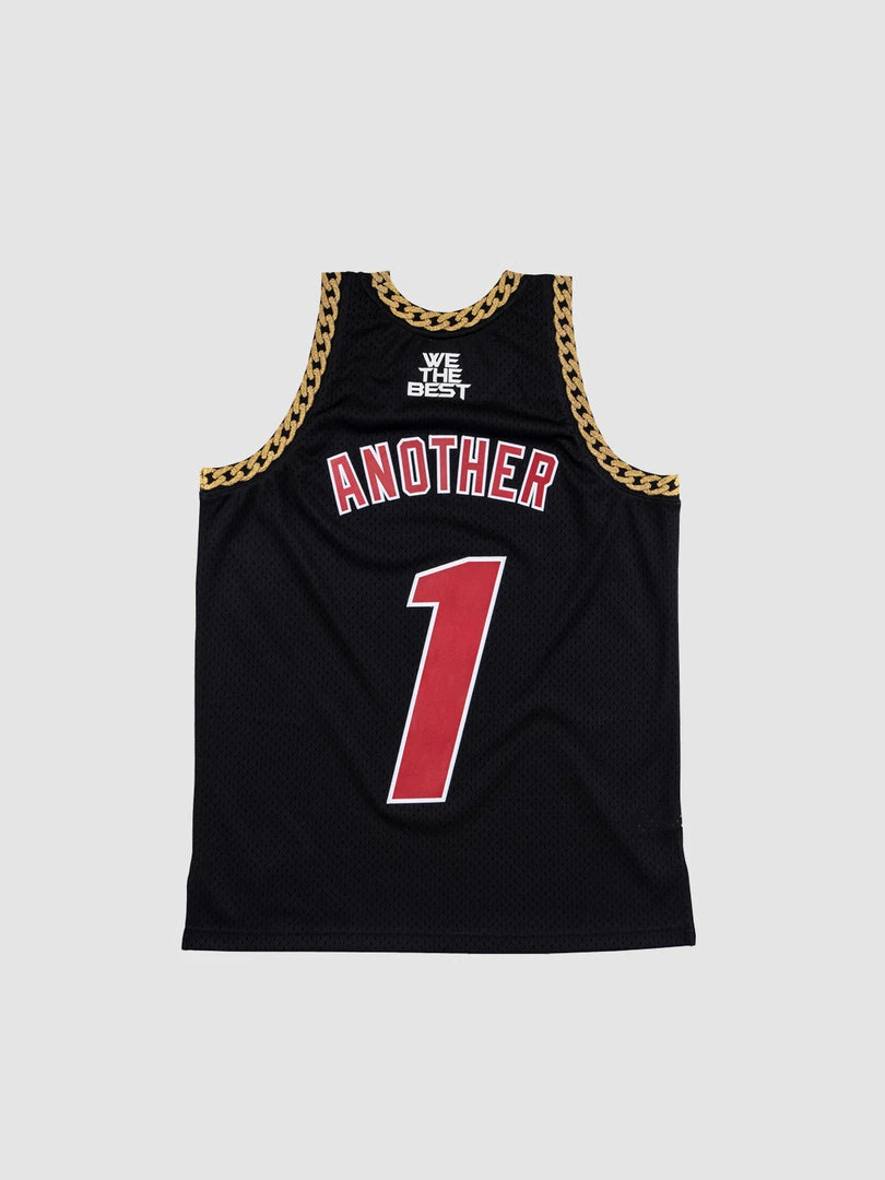 This jersey is 100% polyester with a mesh body, heavy screen printed graphics on body, jacquard graphic ribbing at the neck and armholes, printed tackle twill back name and number and a special collaborative woven jocktag.