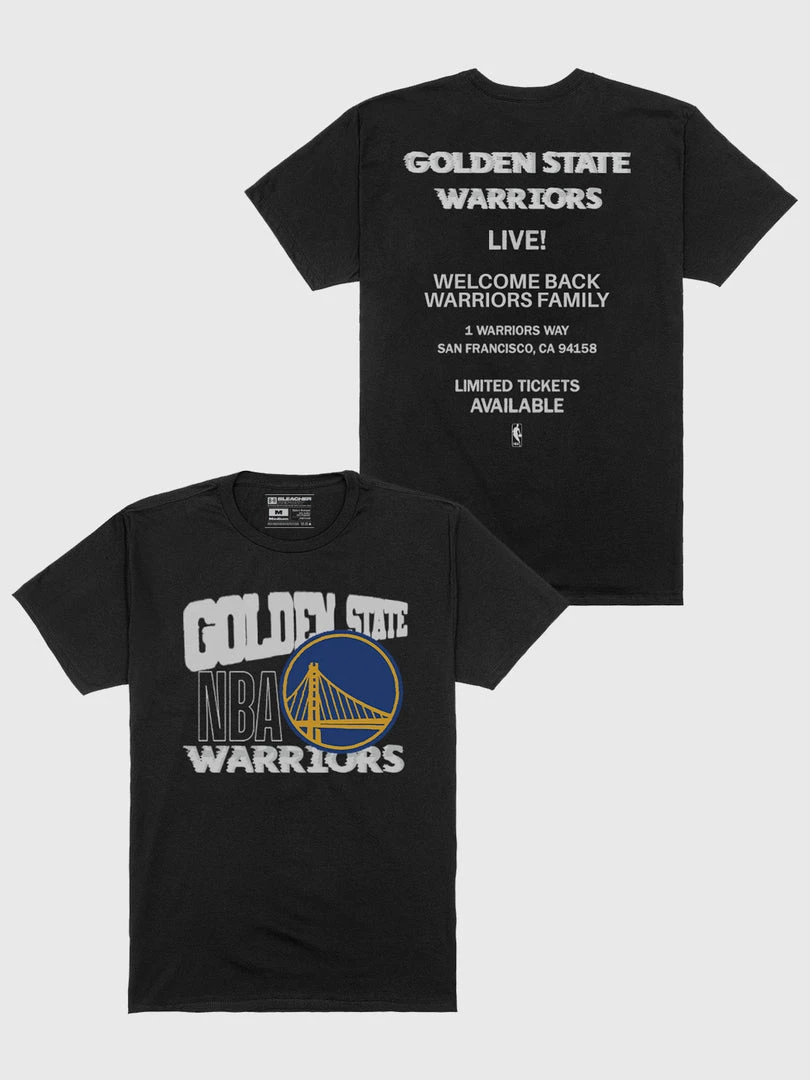 Rep The Warriors ahead of their run with our B/R x NBA “Welcome Back” Playoffs T-Shirt.