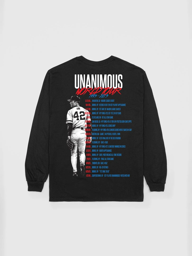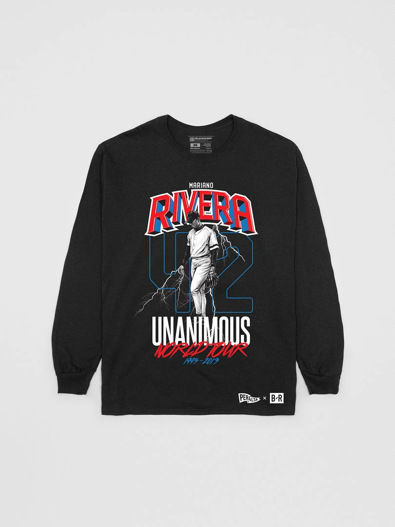 The “Unanimous” long sleeve t-shirt commemorates Mariano Rivera’s legendary career and celebrates his unprecedented unanimous vote into the Hall of Fame. The Mariano Rivera World Tour collection is a collaboration between Mariano Rivera, Bleacher Report and The Peralta Project. The Peralta Project is a lifestyle brand founded by New York City native M. Tony Peralta.